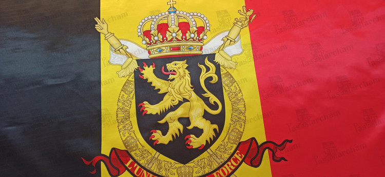 پرچم بلژیک همراه نشان خاندان سلطنتی
