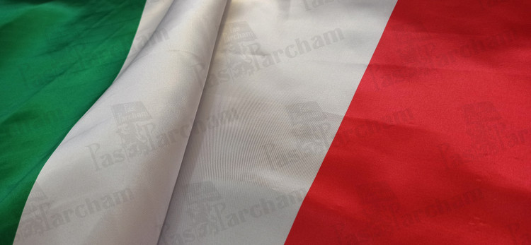 قالب اصلی پرچم ایتالیا برگرفته از همسایه غربی این کشور، یعنی پرچم فرانسه انقلابی میباشد. رنگ سبز برگرفته از رنگ یونیفرم گارد شهر میلان و دو رنگ سفیدو سرخ برگفته از پرچم شهر میلان، پرچم قدیس جرج بود. اما امروزه رنگ سبز نشان سرسبزی این سرزمین و حقوق بشر، سفید نشانه کوه های آلپ و قرمز نشان خون ایتالیایی های کشته شده در جنگ های استقلال شمال این کشور از اتریش است.
