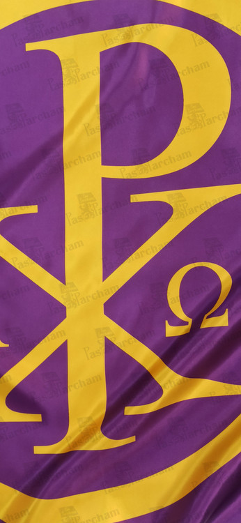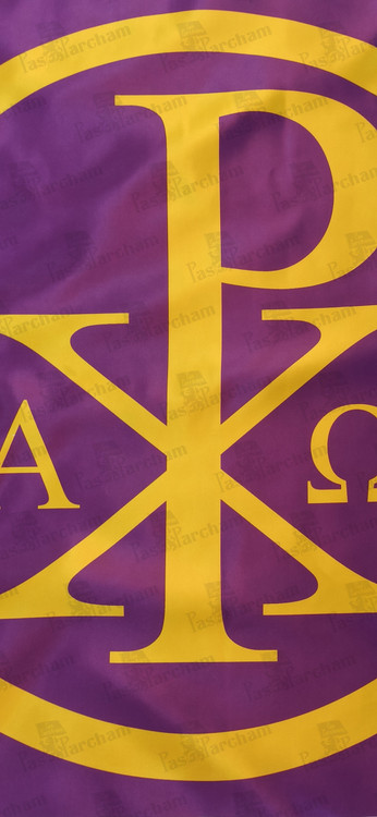 توضیحات: چیزی بنام پرچم رسمی روم شرقی وجود ندارد. در دوران مبارزه امپراتوری روم با مسیحیت، نماد Χρ (دو حرف اول نام مسیح در یونانی Χριστός - معروف به کای رو) به صورت گسترده و زیرزمینی مورد استفاده مسیحیان قرار میگرفت. روایت است که در سال 312 کنستانتین مدعی مسند امپراتوری، قبل از نبرد پل مالیویان یک بار در رویا و یک بار در بیداری صلیبی را در آسمان میبیند که زیر آن نوشته شده در این نشان تو فتح خواهی کرد بدین ترتیب کنستانتین به سربازان خود دستور میدهد همگی نام مسیح (Χρ) را روی سپر های خود بکشند. پس از پیروزی در این نبرد و تثبیت جایگاه کنستانتین، مسیحیت در امپراتوری آزاد میشود و این نماد به صورت گسترده در واحد نظامی، در ساختمان ها و نشان های امپراتوری روم استفاده میشود.