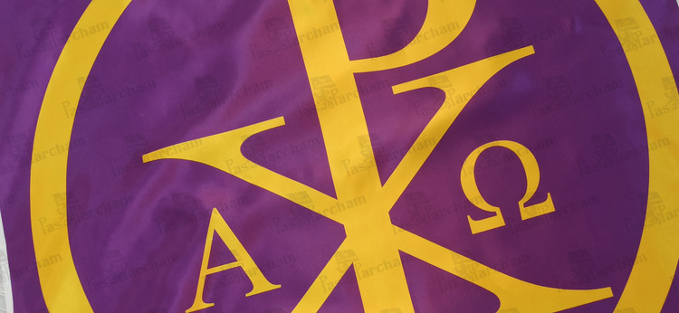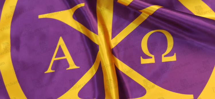 دو حرف آلفا و اومگای یونانی معمولا در کنار نشان "کای رو" بکار میرفتند. که به مکاشفه یوحنا اشاره دارد و به معنای ابتدا و انتها (مثل الف و ی) بودن خداوند در همه امور است.
