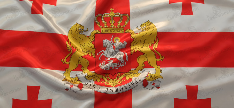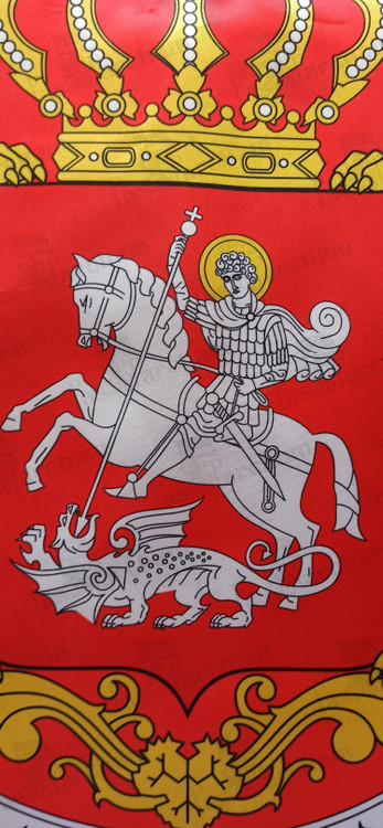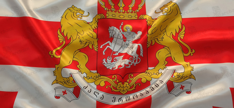 در نشان ملی، قدیس جورج, قدیس حامی کشور گرجستان در حال کوبیدن شیطان دیده میشود.