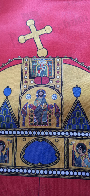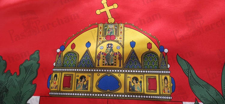 تاج بزرگ بالای نشان، تاج قدیس استفان اولین پادشاه مجارستان و بنیانگذار مسیحیت در مجارستان در سال 1000 یا 1001 میلادی است.