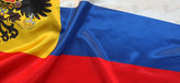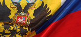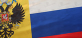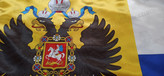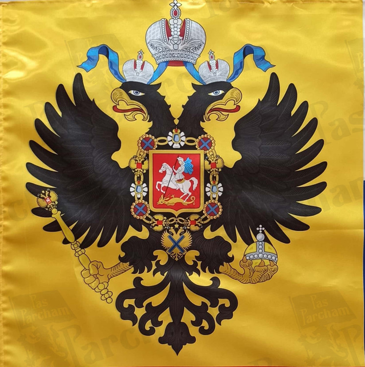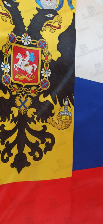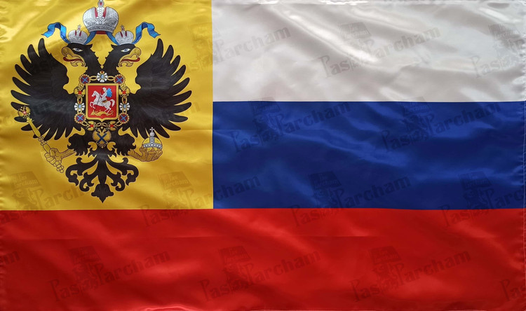عقابی که در گوشه پرچم قرار دارد اما، از زمان سقوط روم شرقی تا معرفی پرچم جدید در زمان پتر کبیر به عنوان پرچم رسمی روسیه به کار میرفت. که به طور مستقیم برگرفته از عقاب دو سر روم شرقی بود، چراکه با سقوط قسطنطنیه در 1453 به دست عثمانی، مسیحیت ارتدوکس آخرین پایگاه خود را نیز از دست داده بود و ملت های ارتدوکس دیگر چون روسیه، والاکیا، صربستان و... که به کلیسای روم شرقی در قسطنطنیه وصل بودند حالا در خطر نفوذ عثمانی قرار داشتند. بدین ترتیب روسیه ادعا کرد روم سوم است و راه روم شرقی را با پیروی از مسیحیت ارتدوکس ادامه میدهد.