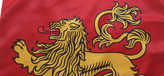 تشکیل شده از شیری طلایی بر زمینه سرخ.
