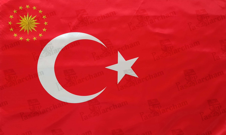 توضیحات: حلال نماد اسلام است که از قرن 19 به طور رسمی در نیروی دریایی و پیش تر از آن نیز به قراوانی در حکومت عثمانی استفاده می شده. رنگ قرمز نیز بیانگر خون کشته شدگان این کشور است. خورشید نماد قوم ترک و ستاره های دور آن 12 حکومت ترک در طول تاریخ میباشند. این پرچم فقط در نشست های رسمی که ریاست جمهوری ترکیه حضور دارد استفاده میشود.