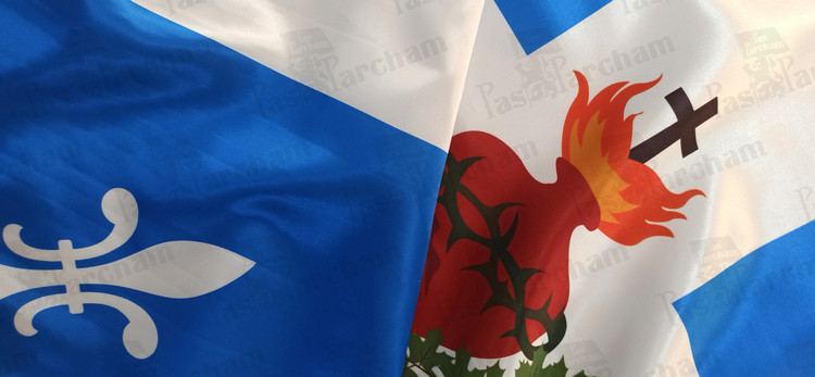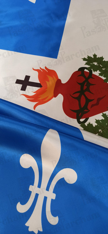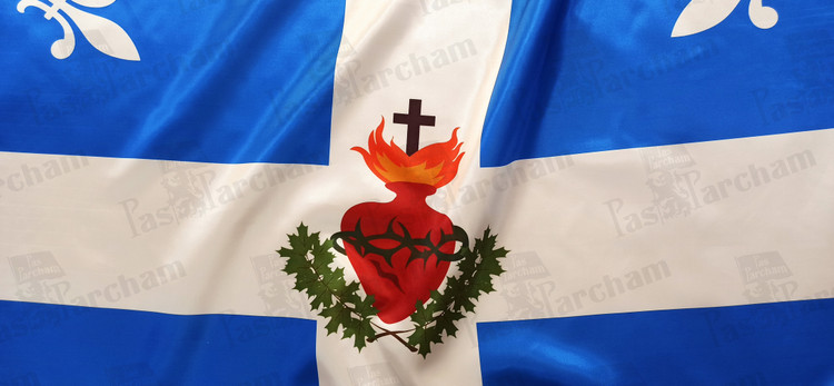 قلب مقدس مسیح که در میان پرچم قرار دارد نشانه باور مردم کبک به مسیحیت شاخه کاتولیک است. رنگ آبی نیز از قرون وسطی به فرانسه مربوط بوده، گل زنبق (fleur de lys) نیز باز از قرون وسطی و از سلطنت خاندان کاپت قرن 12 در دربار فرانسه استفاده میشده و رفته رفته تبدیل به نماد این کشور شد. همچنین این گل نماد حضرت مریم مقدس است و باز به کاتولیک بودن مردم کبک تاکید دارد.