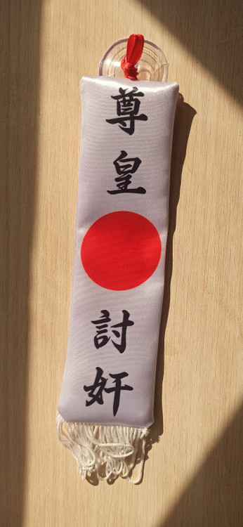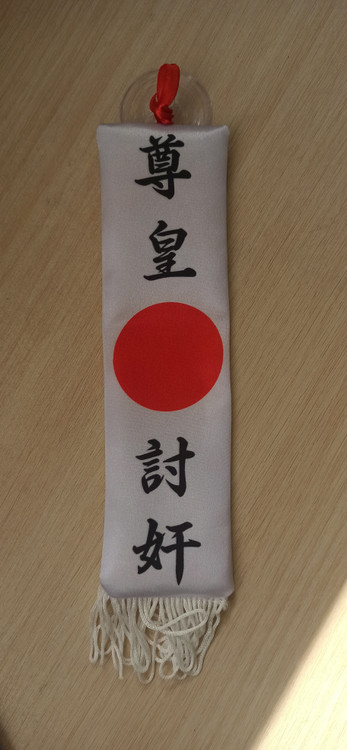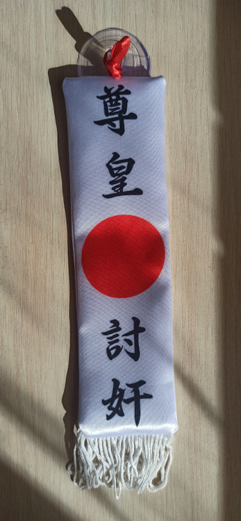 بر روی پرچم عبارت () در سمت راست قرار دارد که یعنی: به امپراتور حرمت بگذارید. و () در سمت چپ اینگونه ترجمه می شود: خائنین را نابود کنید.