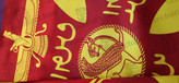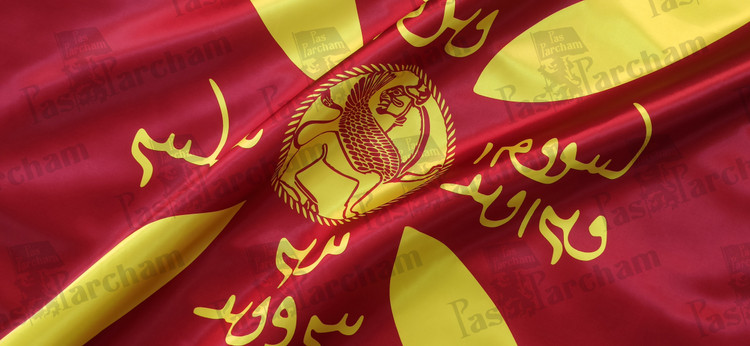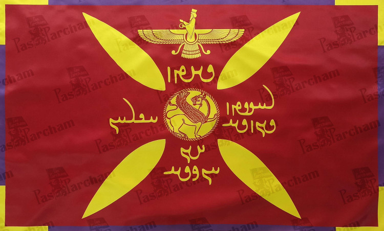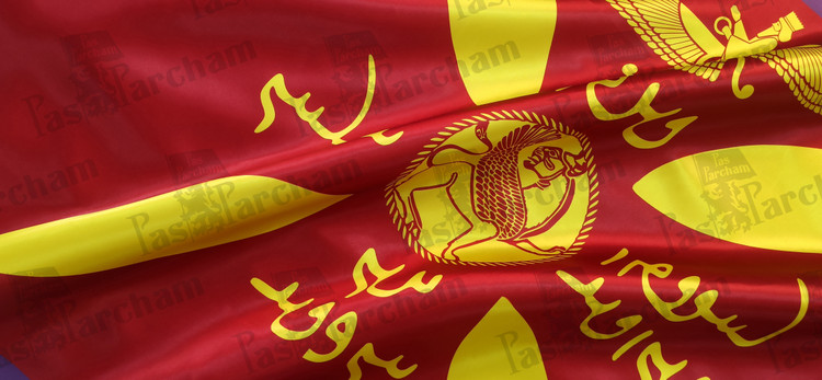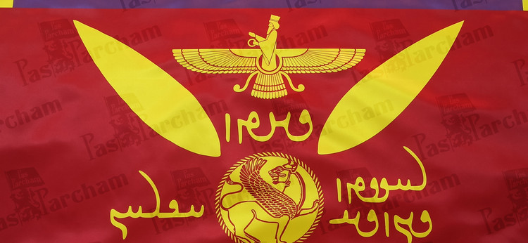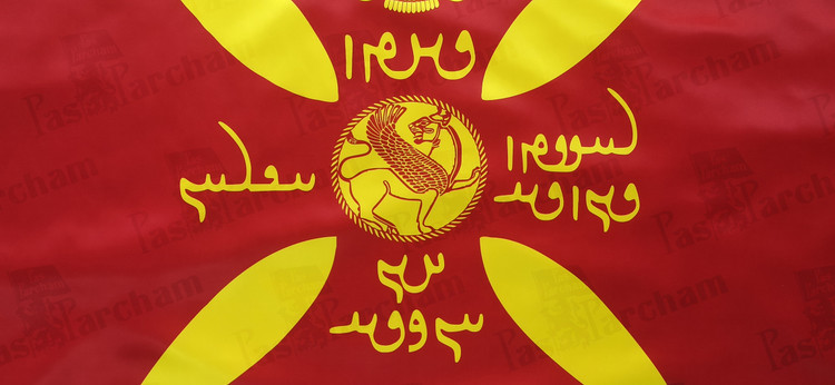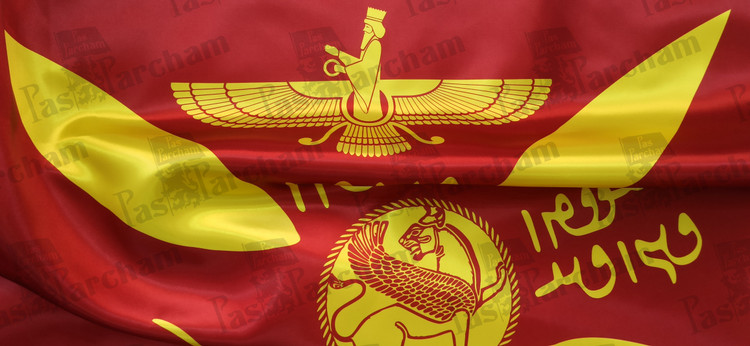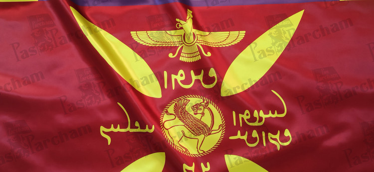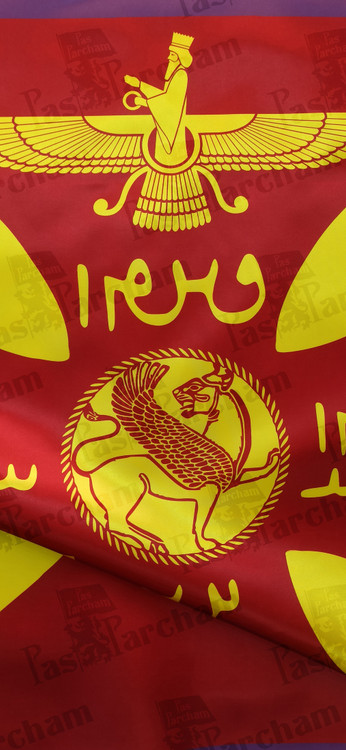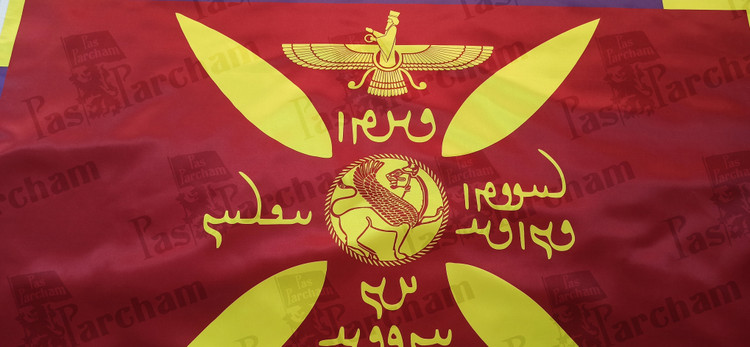 در چهار طرف درفش به خط پارسیگ این کلمات نوشته شده اند