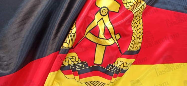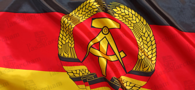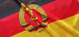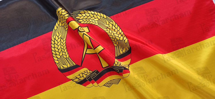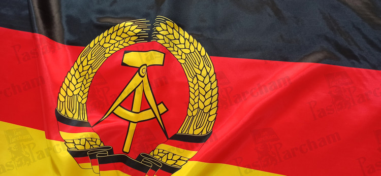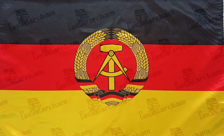 پرچم دولت کمونیستی آلمان با نام رسمی "جمهوری دموکراتیک آلمانی" که توسط شوروی در نیمه شرقی آلمان، شاغال شده به وسیله ارتش سرخ پس از پایاین ج.ج دوم ایجاد شد و تا سقوط بلوک شرق و شکست کمونیسم پابرجا ماند