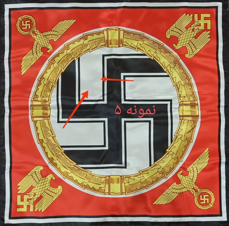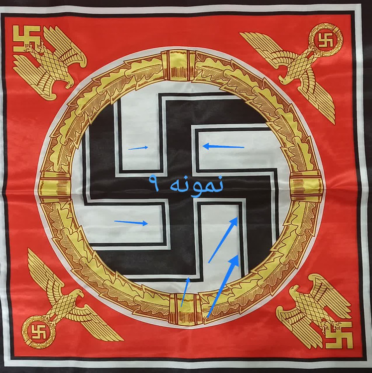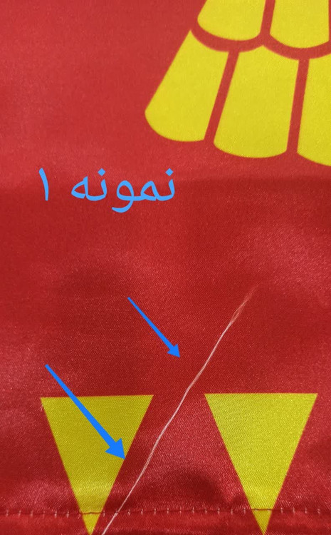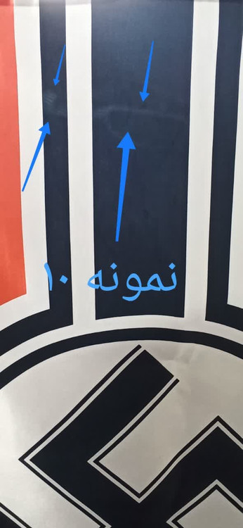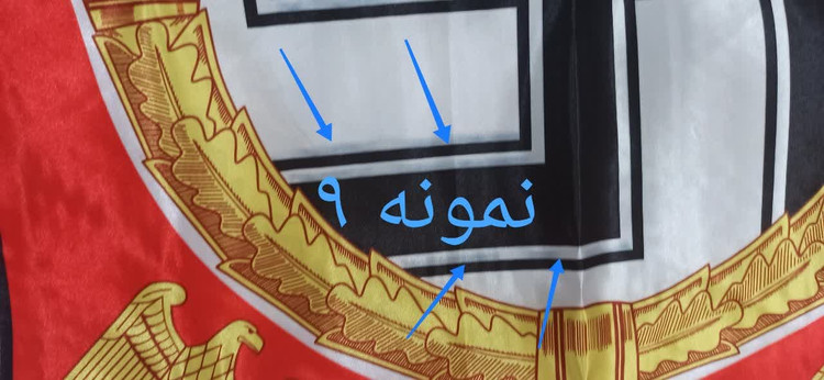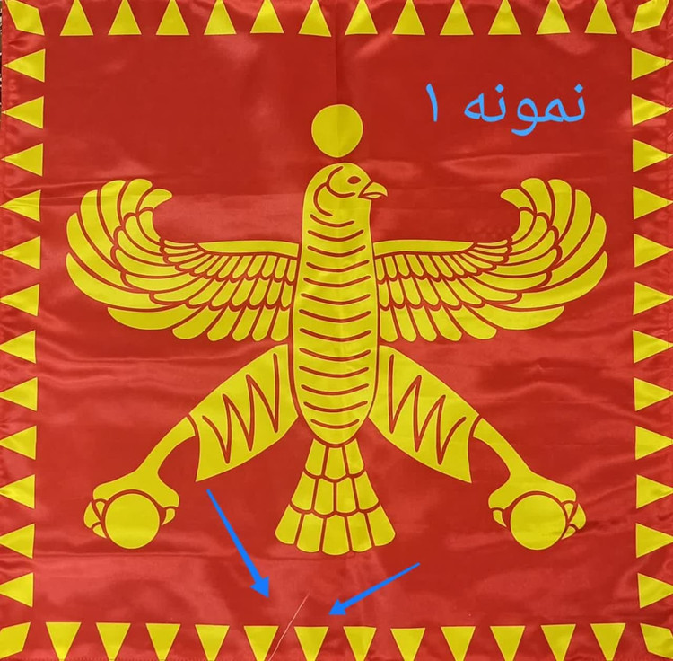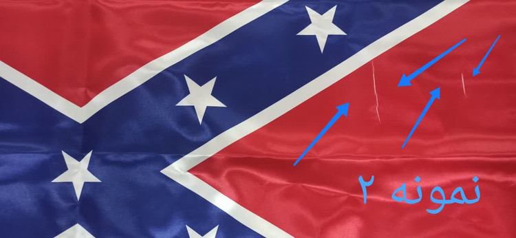 یک رد نخ روی سمت راست پرچم و رنگ قرمز افتاده و زیر آن چاپی صورت نگرفته