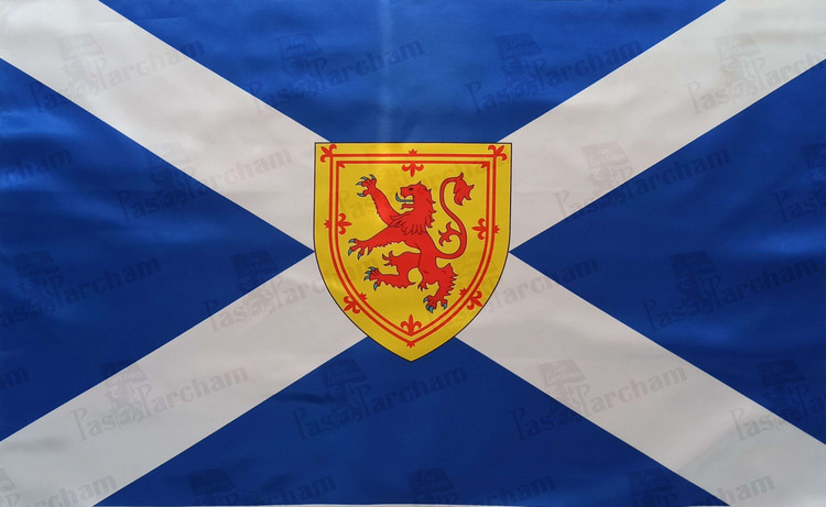 شیر سرخ میان این پرچم برگرفته از نشان خاندان استوارت - خاندان سلطنتی سابق- این کشور می باشد. ضربدر سفید پشت زمینه نیز گویای نحوه شهادت قدیس اندرو -قدیس حامی اسکاتلند- بوسیله صلیب ضربدر شکل میباشد.