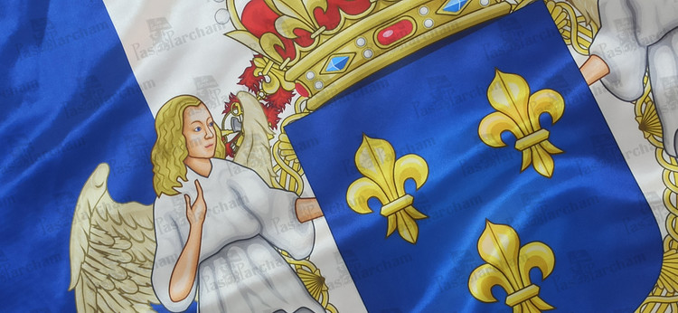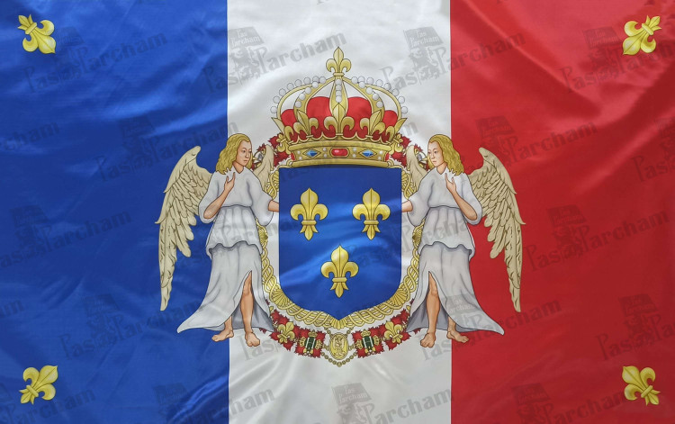 پرچم فرانسه همراه نشان خاندان سلطنتی بوربرون