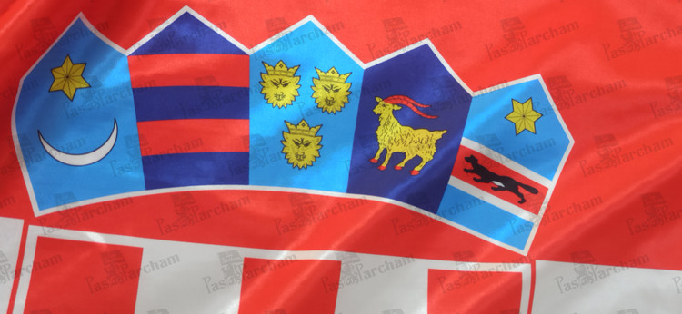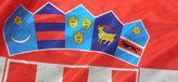نشان میان پرچم از دولت قرون وسطایی کرواسی برگرفته شده که تحت کنترل پادشاهی مجارستان بود. کروات ها مانند سایر اسلاوهای بالکان، پس از سقوط روم غربی و در زمان ضعف روم شرقی به این سرزمین کوچ کردند و در قرن 9 اولین دولت کروات همزمان با صرب ها سربرآورد.