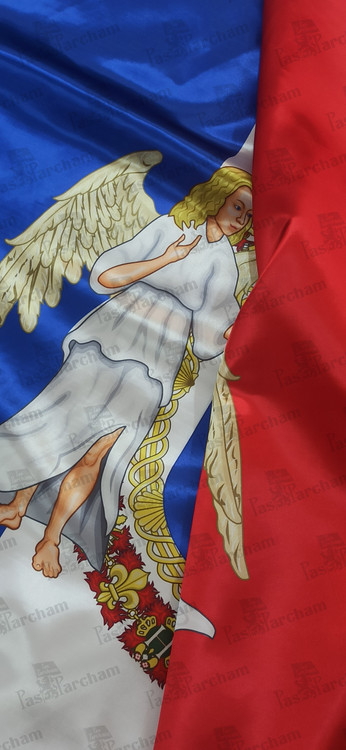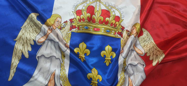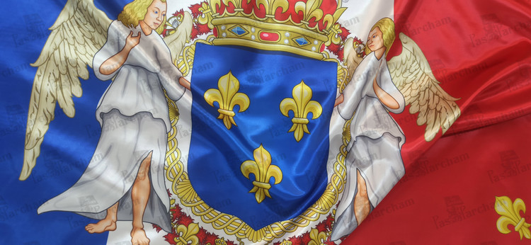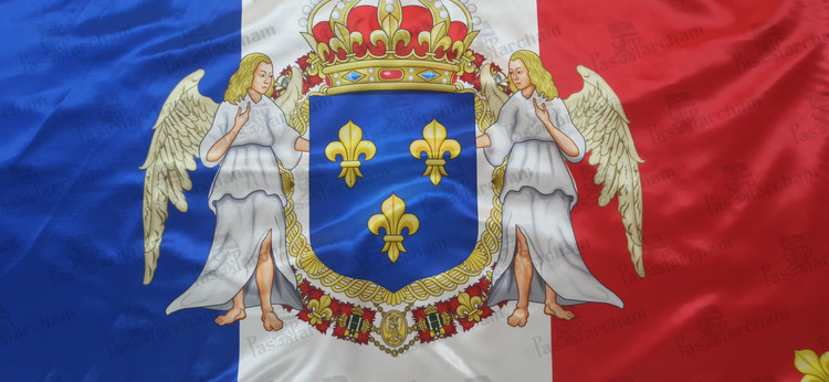 پرچم فرانسه همراه نشان خاندان سلطنتی بوربرون