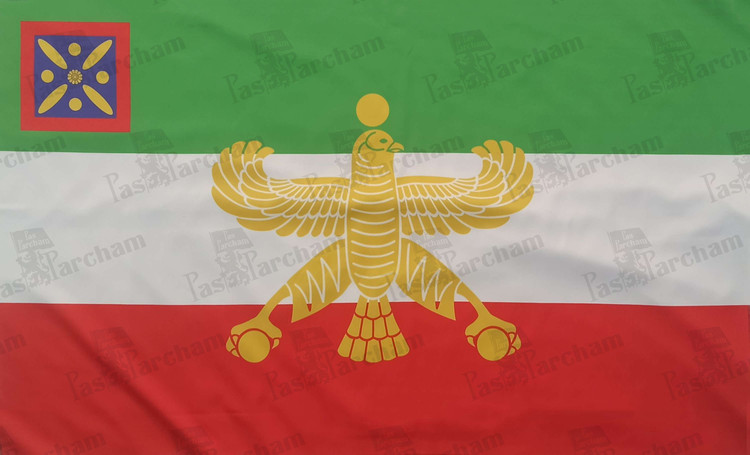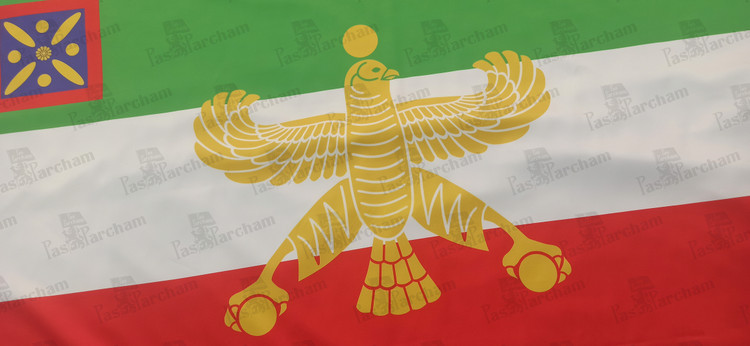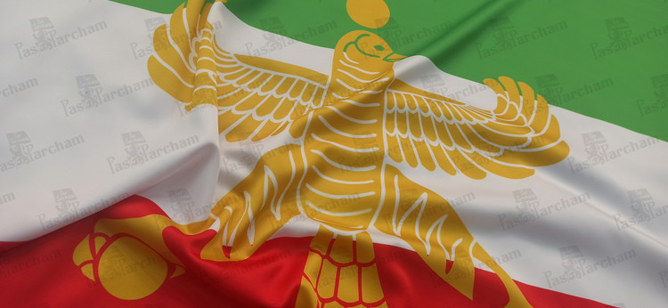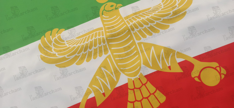همچنین با الهام از پرچم های اروپایی، درفش کاویانی نماد ایران ساسانی در گوشه بالا-چپ (Hoist) پرجم جای گرفته و شاهین هخامنشی به یاد این سلسله، به عنوان اولین موسس کشور ایران متحد دربرگیرنده همه اقوام ایرانی، در میان پرچم قرار دارد.