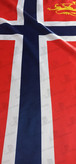 همچون پرچم سوئد، به تقلید از پرچم دانمارک از صلیبی نوردیک به نشانه پیشینه مسیحیت این کشور و شیری طلایی حامل تبری سنگین تشکیل شده است. شیر طلایی تبر به دست از قرن 13 به نروژ منسوب است.
