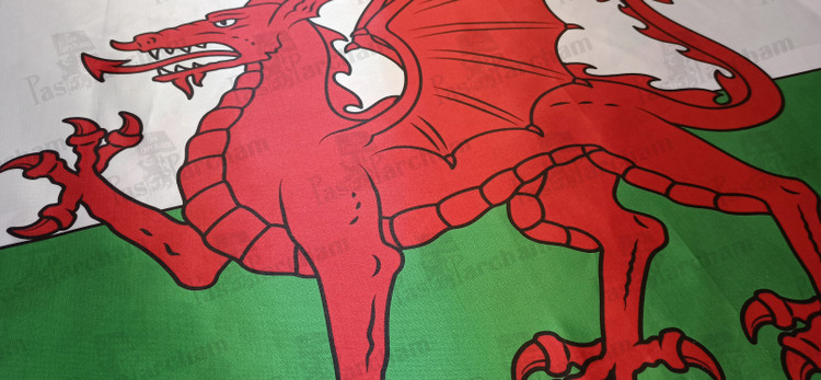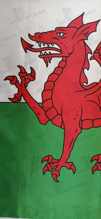 توضیحات: اژدهای سرخ نماد مردم ولز، ساکنان قدیمی جزیره بریتانیا میباشد. در افسانه های ولزی معروف است که اژدهای سرخ با اژدهای سفید (آنگلوساکسون ها- انگلیسی ها) میجنگد و در نهایت او را شکست داده و بریتانیا را از وجود اژدهای سفید بیگانه به این سرزمین پاک میسازد.