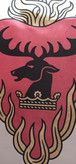 تشکیل شده از گوزن نشان خاندان براثیون، به همراه تاج به نشانه ادعای استنیس بر تاج و تخت و قلبی آتشین به نشانه باور او به خدای (خیالی) آتش.