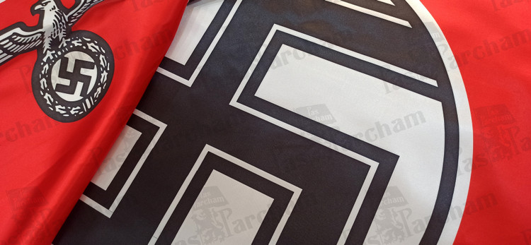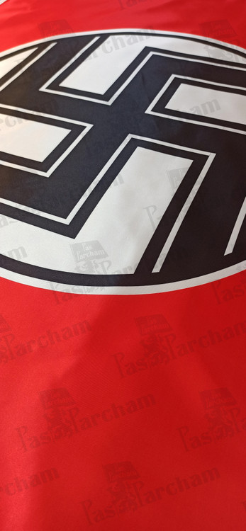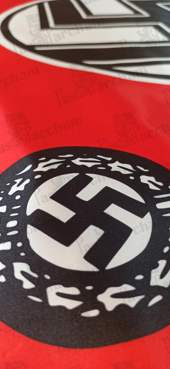 توضیحات: پس از رد بسیاری از پیشنهادات و رنگ ها، روند انتخاب یک پرچم جدید توسط هیتلر به شرح زیر توصیف شد: من خودم پس از تلاشهای بیشمار، فرم نهایی را چیدم؛ پرچمی با پسزمینه قرمز، دیسک سفید و یک سواستیکای سیاه در وسط. پس از تلاش های طولانی ، نسبت مناسبی بین اندازه پرچم و اندازه دیسک سفید، و همچنین شکل و ضخامت سواستیکا را یافتم."