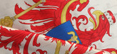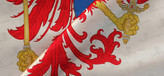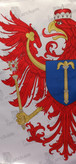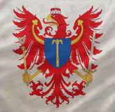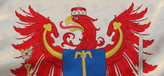 پرچم از یک عقاب سرخ رنگ همراه عصا (نشانه اقتدار) و شمشیر (نشانه قدرت و آمادگی نظامی) تسکیل شده.